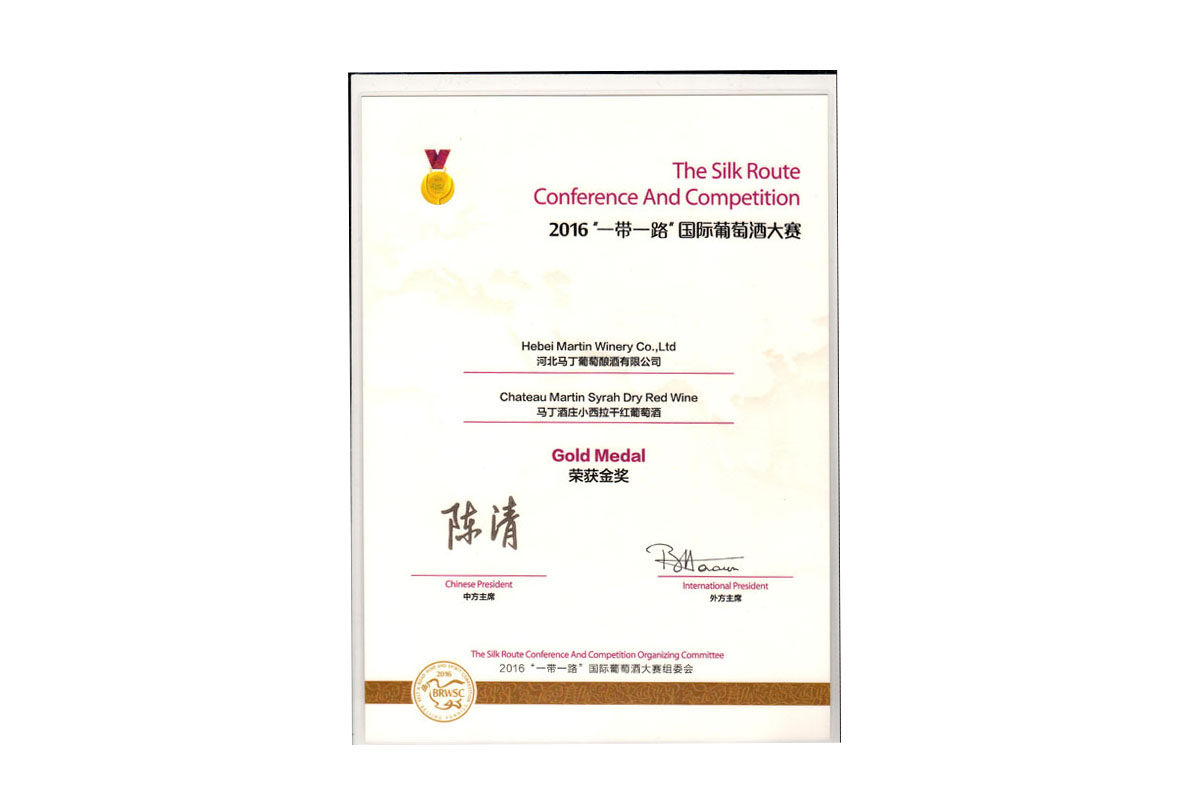 馬丁酒莊小西拉干紅榮獲2016 一帶一路國際葡萄酒大賽金獎