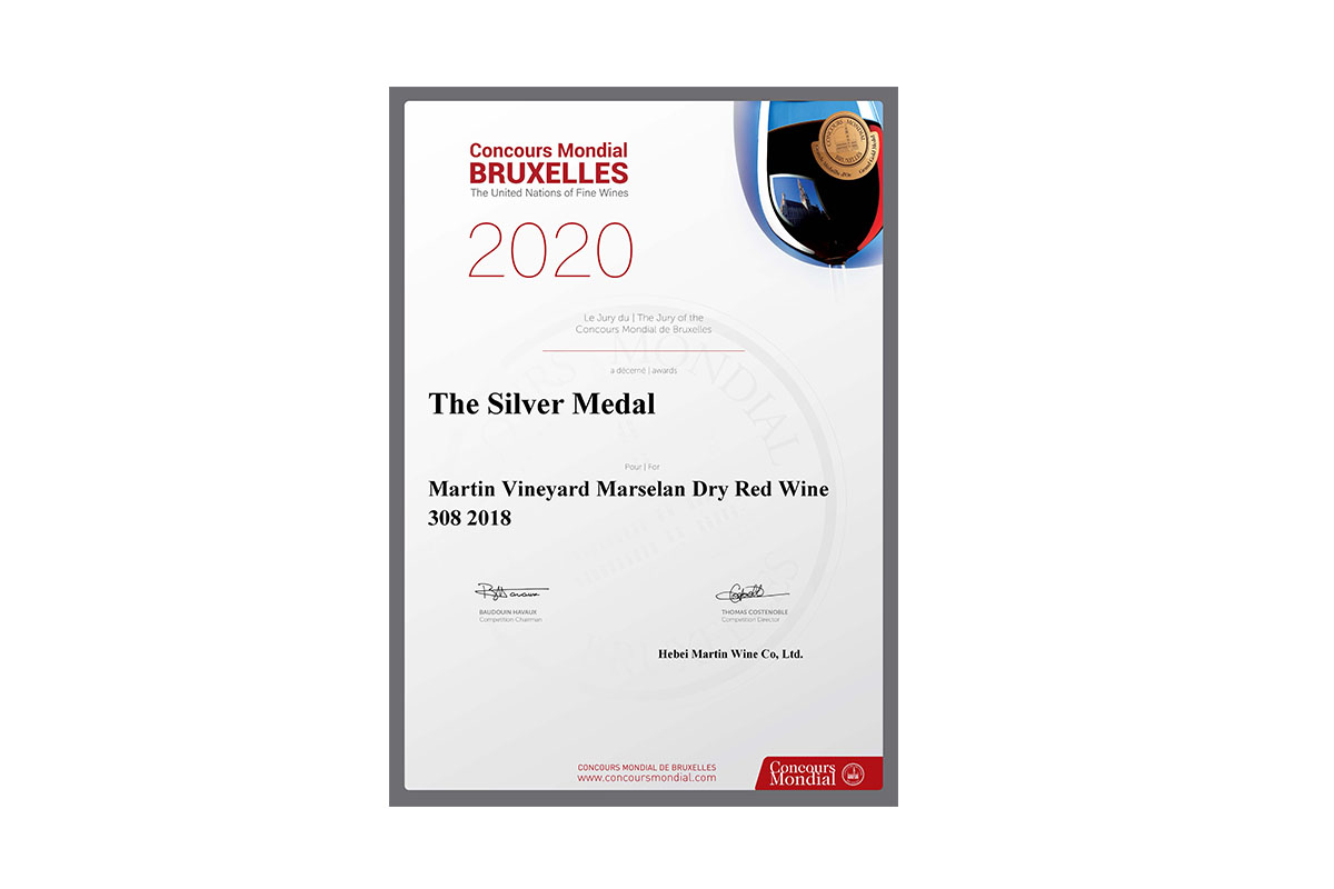 馬丁酒莊馬瑟蘭干紅308 榮獲2020年布魯塞爾金獎